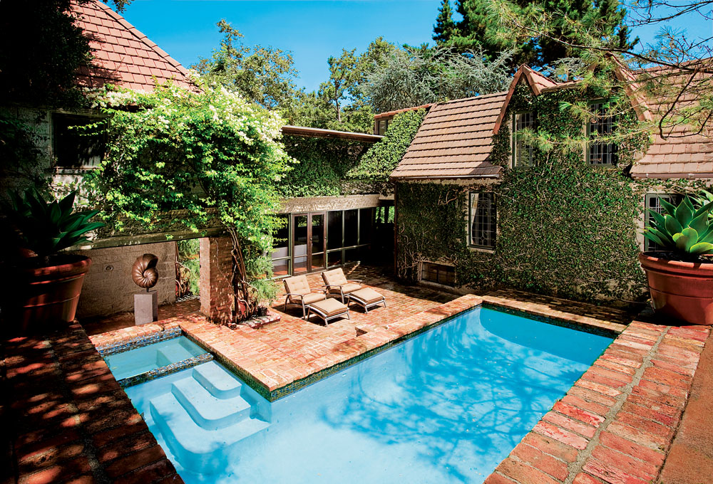 A gated entry from the privacy of Tanner Bridge Road leads in. What follows is simply irresistible. Dappled in the Southern California sunlight of bucolic Stone Canyon, the Cotswold vision is a page taken from the English countryside. Yet this serene two-and-a-half-acre Old World unto itself, a stone’s throw from the chic boutiques of Beverly Hills, is a world that stands ready to embrace a new world transformation for the 21st century. With flowing interiors replete with four fireplaces, hardwood floors, a library, and a two-story glass-walled living area overhung with a balcony, the four-bedroom haven enjoys an array of French doors opening to poolside terraces. It is here, amid the lush and fabled surroundings of Stone Canyon, that your imagination can soar and you can envision your vision for the Cotswold cottage.
