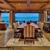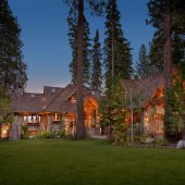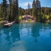 Timeless architecture and modern amenities combine along 100 feet of level Lake Tahoe shoreline beset with lush lawns and stately cedar trees. Gated for seclusion and privacy, the Old Tahoe-style estate affords marvelous lake and mountain views from many rooms, including the main-floor dining area with its 20-foot-wide folding glass doors that open to a spacious lakeside deck. An open kitchen created for the culinary artist and the great room, dominated by a granite boulder fireplace, provide perfect synchronization for uncomplicated living. The upper-level master suite with fireplace and solid stone tub opens through French doors to a cozy lake-view deck. Downstairs offers four lake-view suites and a huge recreation room with a pewter bar and two-way fireplace shared with the library/reading room, where a bookcase swings open to reveal the hidden corking room and wine storage. A one-bedroom caretaker or guest apartment perches above the garage. Four buoys and a shared pier ensure enjoyment of long summer days on the water.