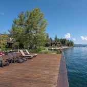 A stunning home ensconced within gated Fleur du Lac—Flower of the Lake—offers amenity-rich lakefront living. The open floor plan keys on sparkling views framed by floor-to-ceiling windows throughout the home. A grand chef’s inspired kitchen opens to both the lakeside dining area and a spacious great room, while the firelit master suite boasts a sitting area and spa-style bath. Three guest suites, a gym room, media room, and fully-equipped wet bar complete the 4,200-square-foot estate. Fleur du Lac itself reflects the original Tahoe spirit on a level 15-acre site offering expansive lawns and lush native plantings. The original Yacht Club serves as the compound’s clubhouse with kitchen, wet bar, lockers for all owners, and a small boat house. Owners also enjoy a private boat slip and shared access to 1,000 feet of shoreline, a pier with lighthouse, a pool, spa, gym, bocce ball court, two tennis courts, concierge services, and an onsite office.