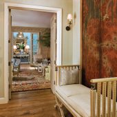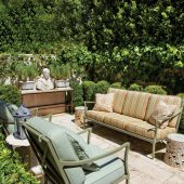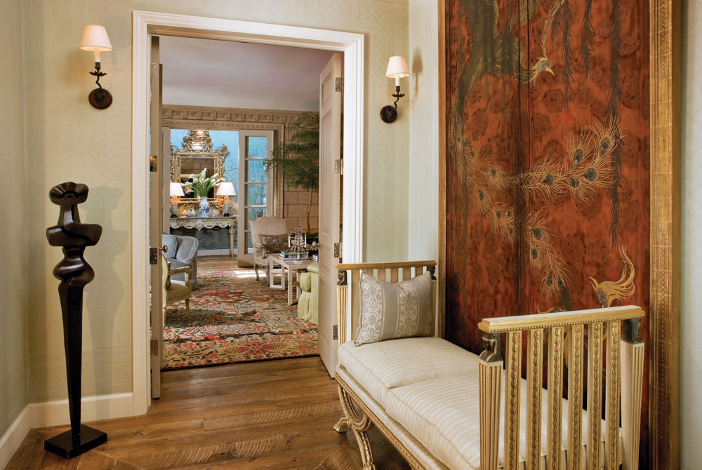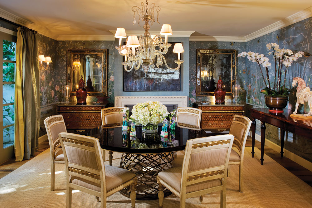 Past the private gates and walls of a glamour setting just above the pulsating Sunset Strip in Los Angeles, you come upon a captivating cottage that has been called by some the most elegant and chic pièd-a-terre ever conceived. Superbly reinterpreted by renowned designer Michael S. Smith to bestow every comfort, its showpiece is a grand paneled living room that melodiously melds high ceilings, crown moldings, a stunning fireplace, and French doors to an intimate garden terrace with a secret meditation oasis. Among the other cherished havens are a formal chandeliered dining room with fireplace, a cook’s kitchen, and two radiant bedroom suites privately positioned off the skylit foyer.