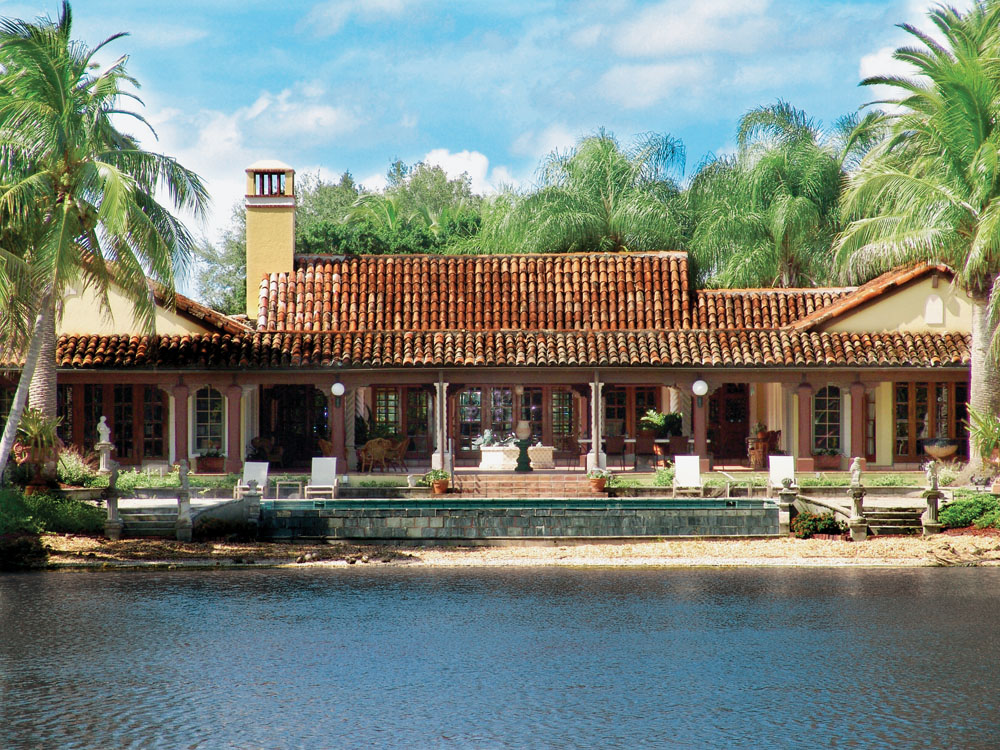 Casa de Giranvento affords a world-class environment reminiscent of Old Florida. A gem of European warmth and charm, its Spanish oak doors unveil an ornate vestibule and foyer, beamed lake-view living room, French-doored Palm Room, cypress library, cathedral-ceilinged banquet room, and skylit kitchen. The soaring master suite with marble bath enjoys a terrace overlooking the pool and lake and is complemented by a guest suite with two bedrooms and a shared sitting room. Grounds sequester a stable.