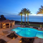 La Capanna is no ordinary beach house. One of the most significant residences ever created for the Gulf of Mexico, the voluptuous Floridian villa in Naples is extraordinary in every way. First comes the setting: a dreamy stretch of white sand beach and aquamarine water as far as the eye can see. Then there is the architecture itself. Crowning an Eden of palmy lawns, the romantic dreamworld dazzles you with its commanding presence, embracing some 16,215 square feet. Past the bougainvillea-bedecked entrance courtyard, a voluminous rotunda with floating staircase greets you. From here you enter the view-filled grand salon. Among other cherished settings are the bar lounge, theater, beachfront gameroom, fitness center, and his-and-her studies. Showpiece of the six bedrooms is the master suite—a celestial sanctuary floating above the Gulf like a gossamer vision.