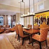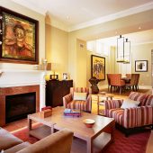 Nestled amid other stately single-family residences along the quiet tree-lined block of Lincoln Park, steps from the Armitage Street boutiques and restaurants, the three-story, three-bedroom row house artfully blends a dramatic staircase, high ceilings, handsome moldings, curved archways, and a trio of elegant fireplaces. A multitude of generous windows further enlivens the 5,200 square feet of flowing space. Among the favorite settings are the soaring living and dining rooms, a sleek kitchen joined by a family room leading to the rear garden, a master suite sequestered from two other bedrooms on the second floor, and a penthouse level with two decks, a guest suite, and office. A gym is found on the lower level.