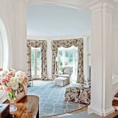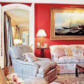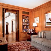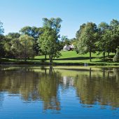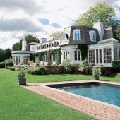 A place of infinite beauty, the 1930s Bedford manor bestows classic French architecture on 34 glorious acres an hour from Manhattan. Elegance reigns in the semicircular vestibule, soaring front-to-back entrance hall, French-doored living room with marble fireplace, octagonal dining room, firelit family room, sprawling kitchen, and conservatory overlooking the pool and lake. The private master wing is complemented by an upstairs suite and four bedrooms. A lower-level pub, handsome guesthouse, screening pavilion, tennis court, and apartment welcome beyond.