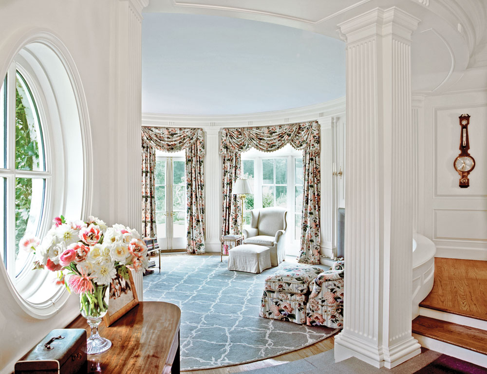 A place of infinite beauty, the 1930s Bedford manor bestows classic French architecture on 34 glorious acres an hour from Manhattan. Elegance reigns in the semicircular vestibule, soaring front-to-back entrance hall, French-doored living room with marble fireplace, octagonal dining room, firelit family room, sprawling kitchen, and conservatory overlooking the pool and lake. The private master wing is complemented by an upstairs suite and four bedrooms. A lower-level pub, handsome guesthouse, screening pavilion, tennis court, and apartment welcome beyond.