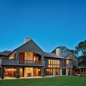 Near world-famous Atlantic beaches in the heart of Bridgehampton, noted architect Lacina Heitler outdid herself when she transformed what was already a classic landmark into a soaring glass-walled country sentinel infused with the spirit of an Aman resort hotel. Nearly 9,000 square feet of living space flows from ethereal public rooms, each with a unique fireplace, to a high-tech marvel-of-a-kitchen joined by a firelit alfresco dining area. Two other settings are unforgettable. One is the master suite, a pristine firelit oasis unto itself outfitted with a lavish bath, dressing room with enormous closets, and view-filled balconies. The other is the pool pavilion, where—especially by the magic of starlight—reflections from main residence, poolhouse, and illuminated gardens dance in the water, paying homage to the drama of the architecture.
