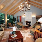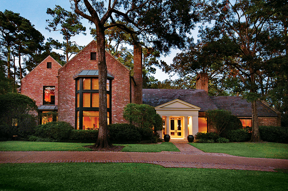 When designer Tony Frederick and builder Tynes Sparks joined forces for their project in Houston, they outdid themselves. The unique brick-and-glass residence they created sits in seclusion beyond gates and a circular drive and, glowing anew after a major update in 1997, remains one of the distinguished landmarks of River Oaks. Styled to savor spectacular views of a radiant swimming pool, romantic arbor, and lush ravine, room after room of quiet splendor evokes elegance with soaring glass, beautiful oak and pine floors, precious marble, and finely crafted custom millwork. The beamed living room is an oasis of calm and sophistication with its formal French fireplace and luxuriant garden vistas. Another highlight, the dramatic den captures the outdoors through a tall wall of glass. Styled for serious cooking, the kitchen enjoys a granite island. Also on the main level are a guest bedroom and the master bedroom, appointed with generous his-and-her baths. Upstairs, game and media rooms and four additional bedrooms bestow the same graciousness on the rest of the family and their guests.