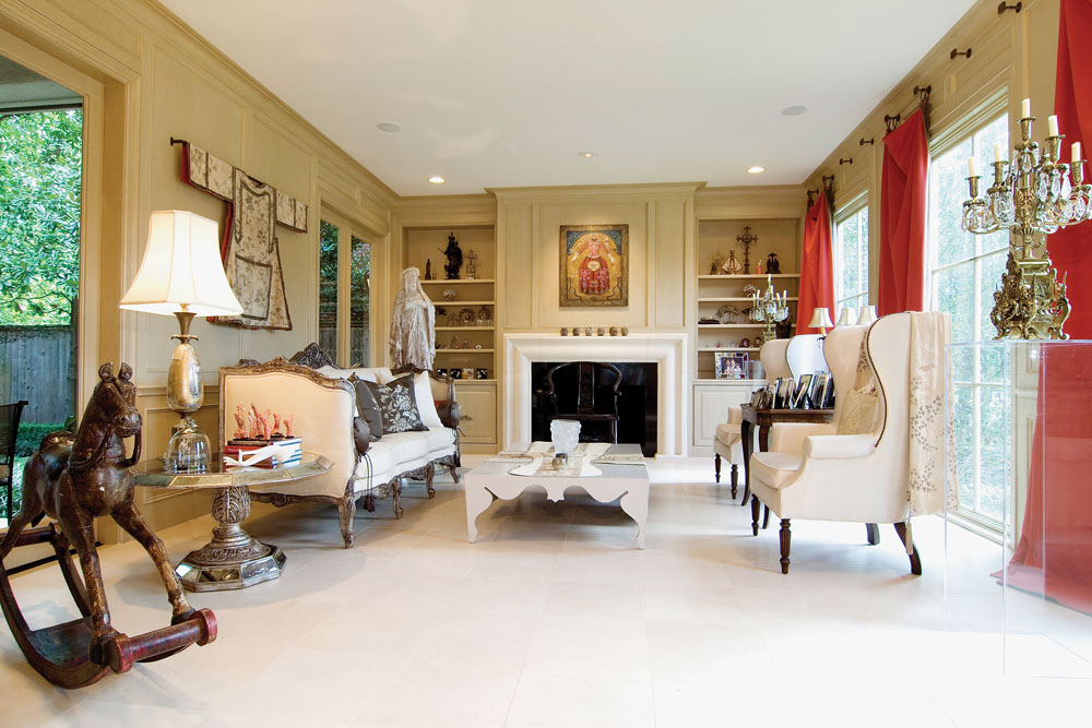 From within the private gates of Stablewood, one of the most prized residential enclaves in Houston, the majestic Mediterranean-styled dwelling welcomes both large gracious formal gatherings and quiet family pursuits. An arched entrance door underscores its European heritage at the outset, as do traditional stone and wood floors. From here, guests enter the living room, a handsome space appointed with a fireplace flanked with tall bookshelves. Beautiful picture windows overlook the lawns, and a cozy den beckons nearby. Also on the first floor, the lovely master suite, created as a private oasis unto itself, features an elegant fireplace and luxurious bath. The second floor is devoted to family and guest bedroom areas. Outdoors, an inviting veranda offers alfresco dining in a setting from which to enjoy evenings under the stars.